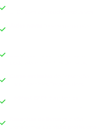 Para quem já atua na área e deseja se atualizar, o EFC+ traz aulas práticas e teóricas que ajudam você a se tornar uma referência no mercado, elevando seu reconhecimento profissional.